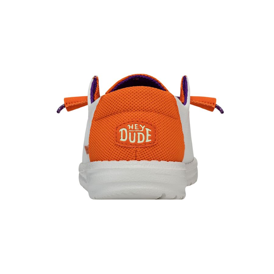 The Women’s Wendy now screams school spirit! Show your support for the Clemson Tigers in style with a unique design featuring the bold team colors. Made with signature HEYDUDE™ comfort. lightweight materials. and a slip-on design. these are perfect for all-day wear to bring you and your crew from the tailgate to the game.
