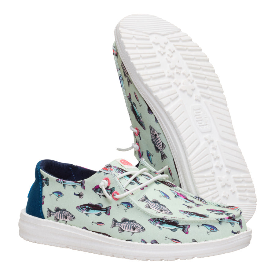 Gone fishin’? Reel in that laidback day-on-the-lake comfort with the Wendy Fish Lure. Lightweight cushioning. a flexible sole and an easy slip-on fit join up for a feeling just as good as a casual afternoon on the dock–or actually–even better.